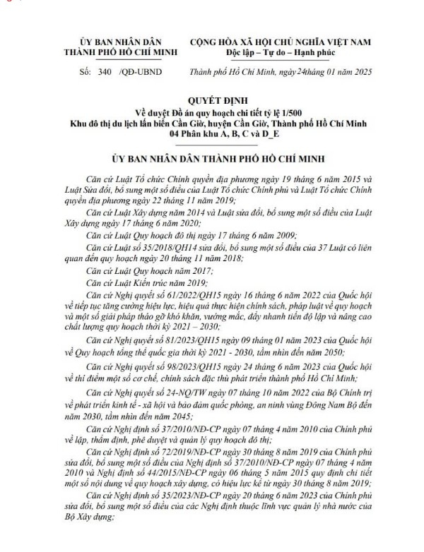 Quyết định 340/QĐ-UBND do UBND TP.HCM ban hành ngày 24/01/2025 là bước ngoặt quan trọng trong tiến trình pháp lý của dự án. Theo đồ án được duyệt: